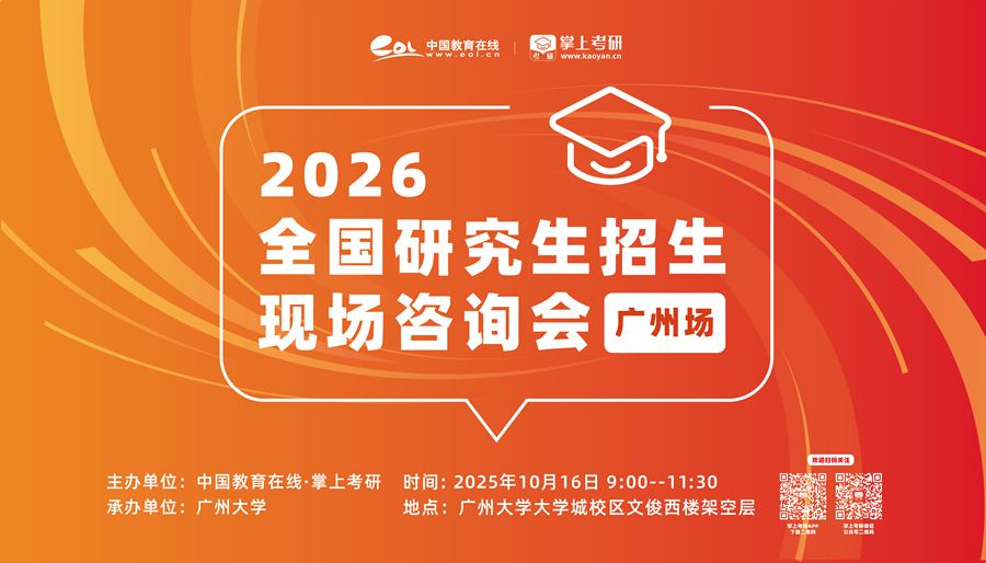 广州大学招生处联合中国教育在线将举办“2026全国研究生招生现场咨询会”(广州场),搭建考生与高校之间的互动平台,省内外高校纷纷到场设展,欢迎你面对面咨询提问!
