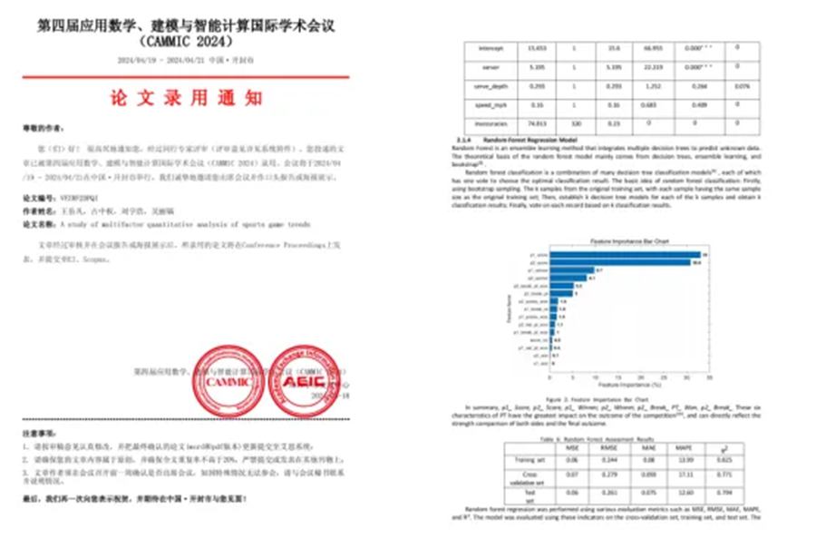 此外,优秀数模作品还能转化为学术成果。曾参赛获奖的王岳凡团队编写的论文,已被第四届应用数学、建模与智能计算国际学术会议(CAMMIC 2024)录用,将在 EI、Scopus 收录的会议论文集上发表,为升学深造增添重要砝码。