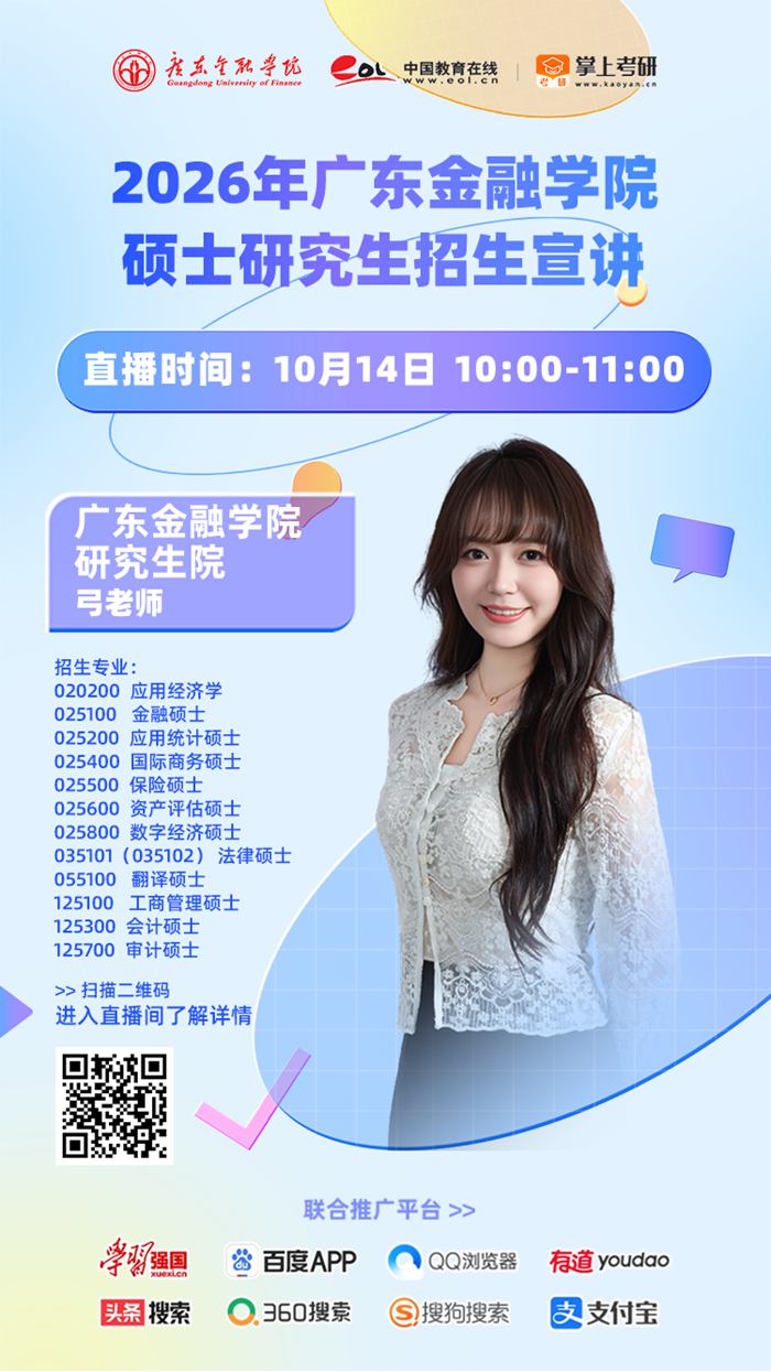 10月14日(周二)上午10:00,广东金融学院2026年研究生招生线上宣讲会开讲在即!