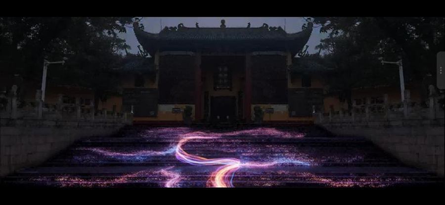 作为广美主持的国家艺术基金2025年度艺术人才培训项目《光影艺术创意设计人才培训》的成果转化,“梦幻·南华”是全国首个以中国禅宗祖庭为核心场域、以光影艺术×科技媒介×文化叙事融合呈现的大型公共艺术项目。由广州美术学院师生及《光影艺术创意设计人才培训》项目学员组成的创作团队,以“光影与禅意”为灵感,运用光色渲染、光束勾勒、数字影像等现代光影技术,营造多维度的艺术空间,让观众在光与影的交织中,体悟禅宗的宁静与当代审美的诗性。