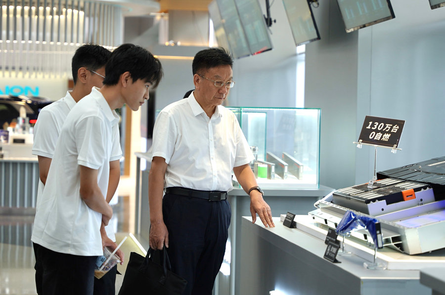 校党委书记的“思政第一课”结束后,师生们沿着习近平总书记的考察足迹,开始了沉浸式研学之旅。在科技体验馆,通过智能驾驶模拟、多媒体交互等前沿科技,师生们亲身体验了未来出行场景,全方位感受了广汽埃安在电池技术、智能网联等领域取得的突破性创新成果。在高度自动化的生产车间,学员们近距离观看了新能源汽车从零部件到整车的全流程智能制造过程,对“新质生产力”有了更直观、具体的认识。一件件实物、一项项技术、一道道工序,让抽象的理论变得可知可感,极大地激发了学员们的求知欲和民族自豪感。