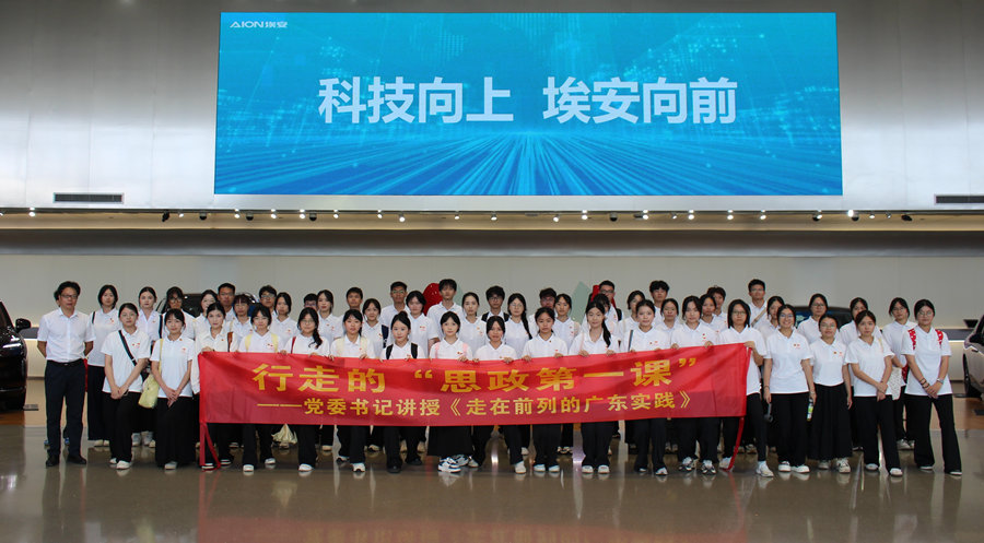 10月16日下午,广汽埃安新能源汽车股份有限公司的生产车间里,一堂别开生面的“思政第一课”火热开讲。广东外语外贸大学南国商学院党委书记许志超,党委副书记、副校长赵福春带领马克思主义学院老师、团委老师及学校“青马班”学员60余人,走进这家全球新能源汽车领军企业,开展沉浸式实践教学,让思政课堂与产业一线紧密相连。