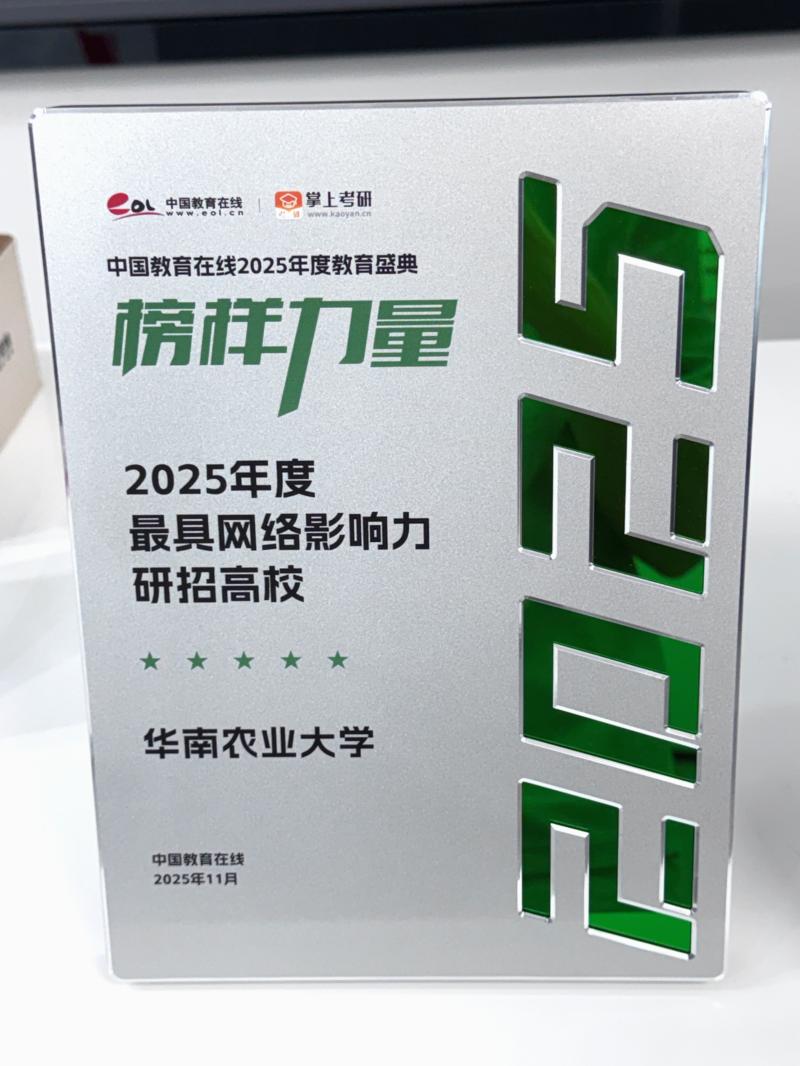华南农业大学荣获“2025年度最具网络影响力研招高校”