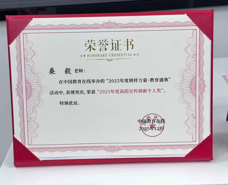 这一殊荣不仅是对桑毅老师个人在高招宣传工作中的高度认可,更是彰显了学校在招生宣传创新方面的坚定决心与显著成效。其成功经验将激励更多的教育工作者勇于创新、敢于实践,为学校的招生工作注入新的活力与动力。