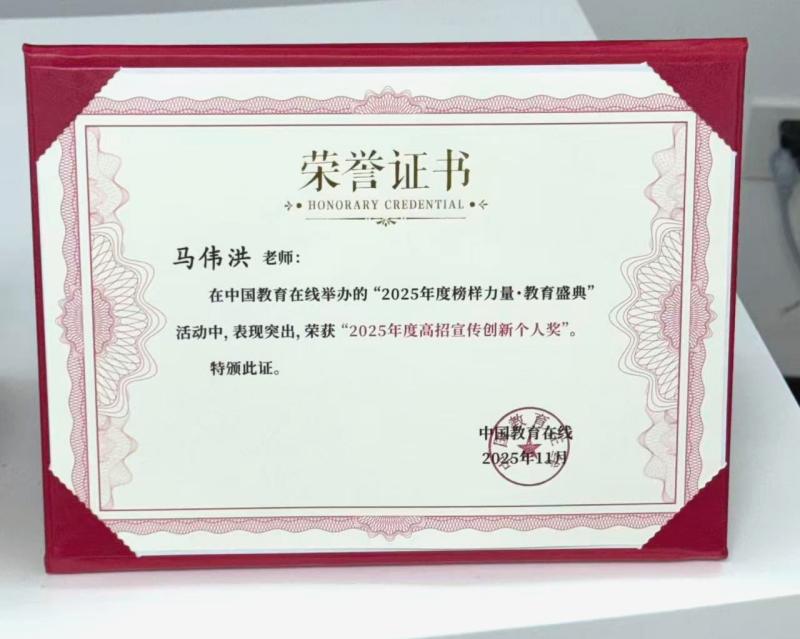 这一殊荣不仅是对马伟洪老师个人在高招宣传工作中的高度认可,更是彰显了学校在招生宣传创新方面的坚定决心与显著成效。其成功经验将激励更多的教育工作者勇于创新、敢于实践,为学校的招生工作注入新的活力与动力。