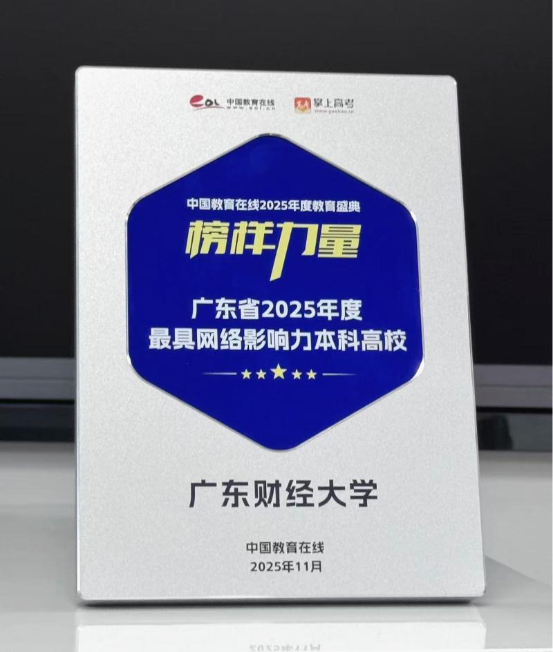 近日,中国教育在线“榜样力量·2025年度教育盛典”优秀案例名单公布。广东财经大学凭借极具创新性与前瞻性的招生宣传策略,以及扎实过硬的宣传执行实力,从众多高校中突围,获评“广东省2025年度最具网络影响力本科高校”。