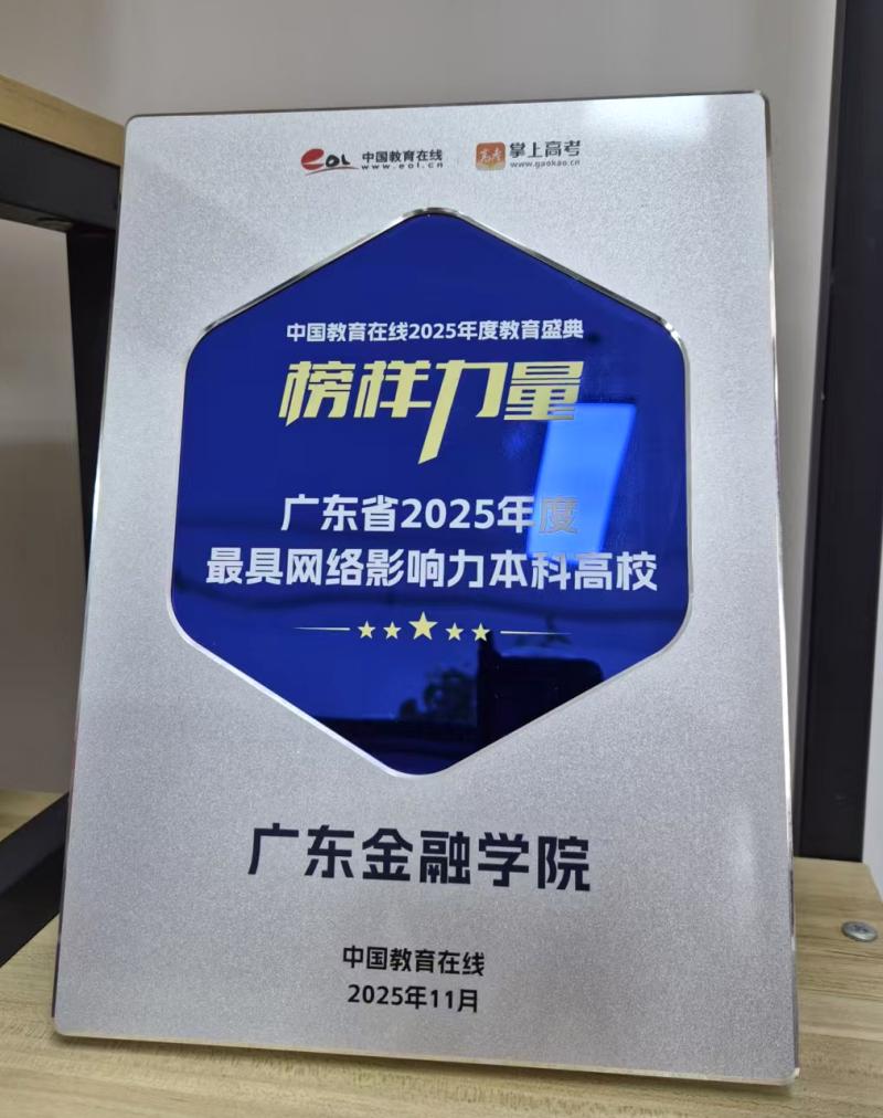 近日,中国教育在线“榜样力量·2025年度教育盛典”优秀案例名单公布。广东金融学院凭借极具创新性与前瞻性的招生宣传策略,以及扎实过硬的宣传执行实力,从众多高校中突围,获评“广东省2025年度最具网络影响力本科高校”。
