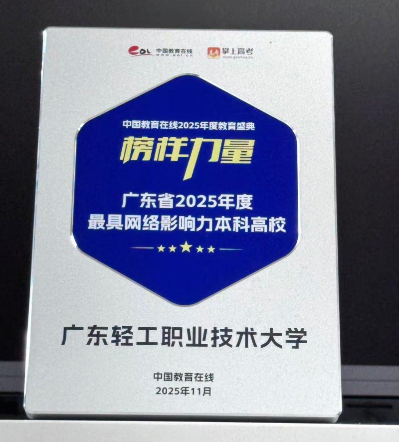 此奖项不仅是对广东轻工职业技术大学招生宣传工作的高度肯定,更彰显了广东轻工职业技术大学在教育数字传播浪潮中,引领高校网络形象塑造、信息传播新范式的卓越能力与突出贡献。