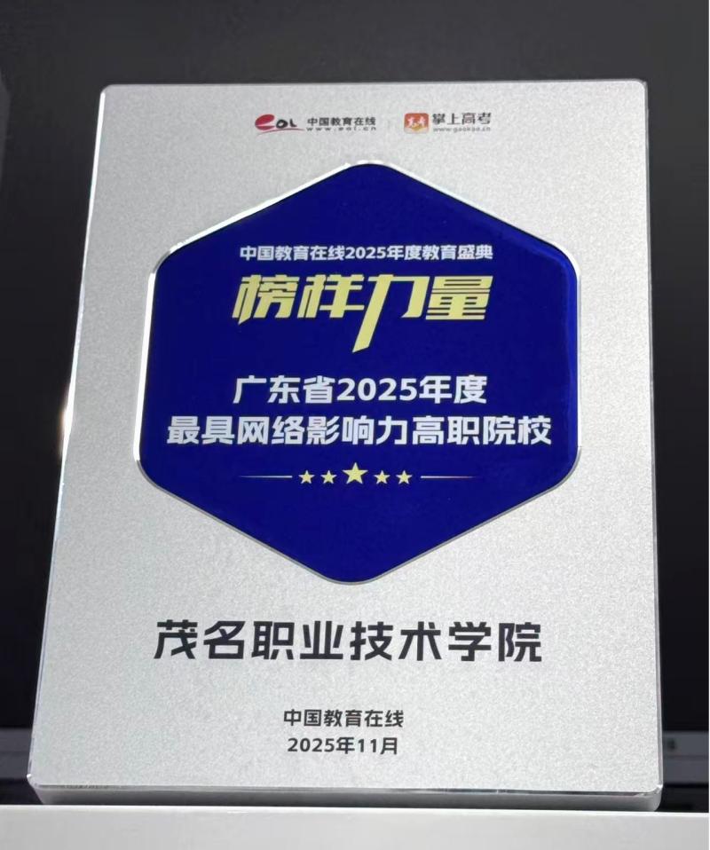 此奖项不仅是对茂名职业技术大学招生宣传工作的高度肯定,更彰显了茂名职业技术大学在教育数字传播浪潮中,引领高校网络形象塑造、信息传播新范式的卓越能力与突出贡献。