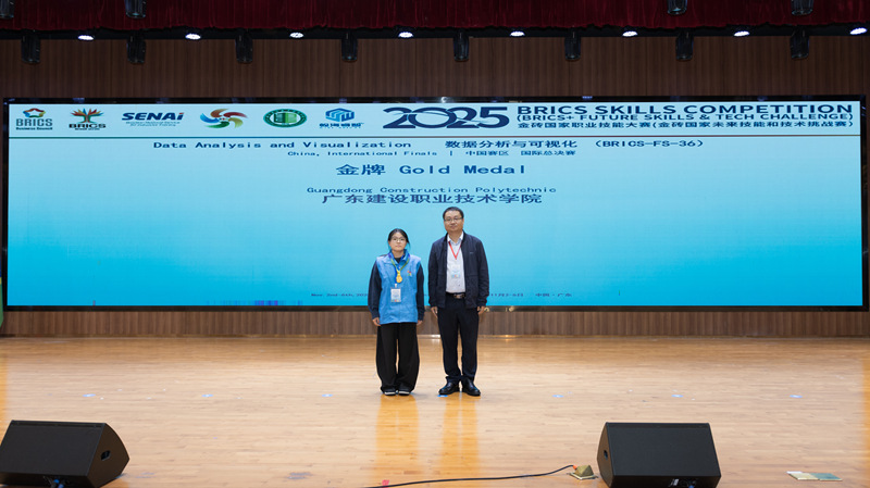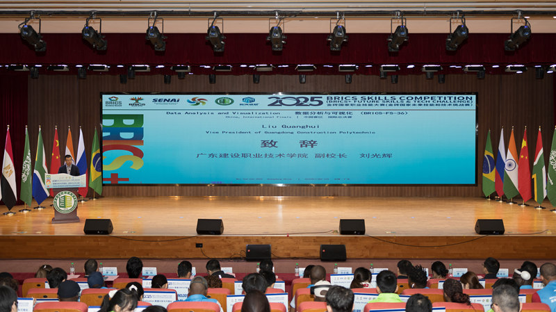 11月6日,2025金砖国家职业技能大赛数据分析与可视化赛项中国赛区国际总决赛闭幕式在广东建设职业技术学院清远校区学术报告厅举行。