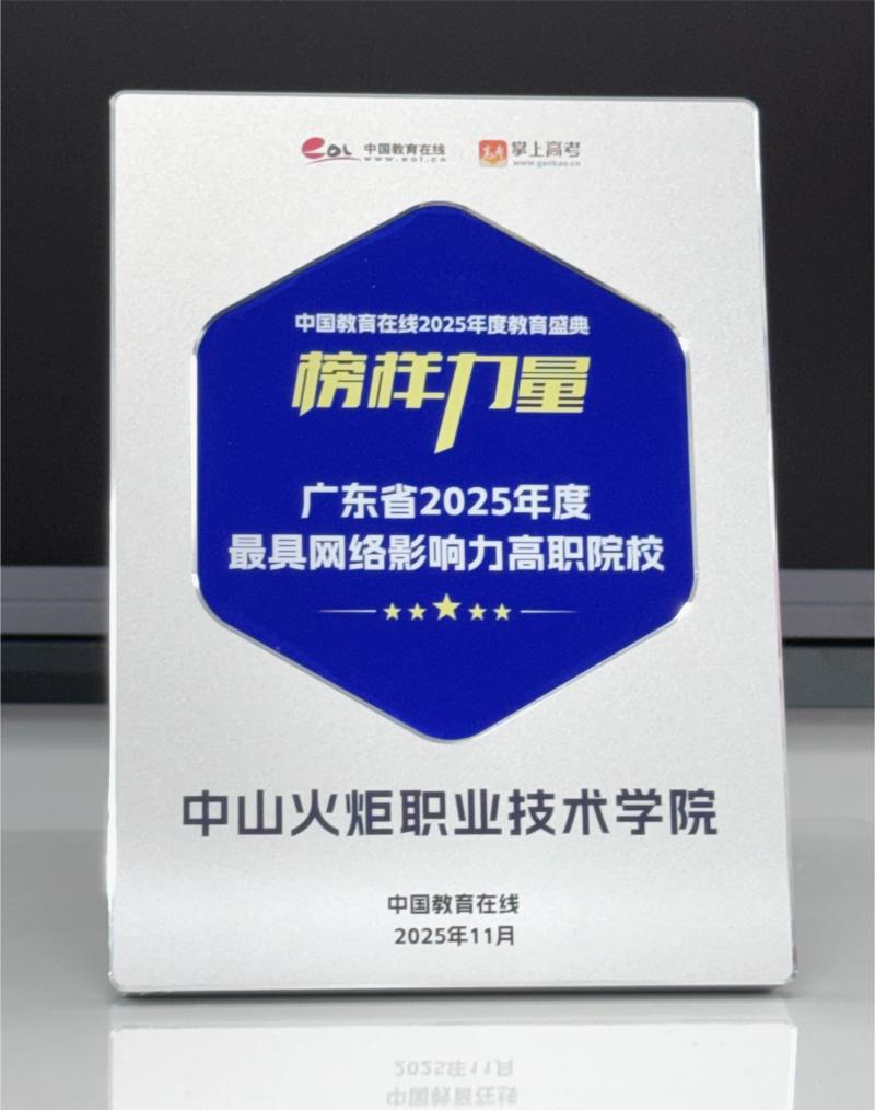 近日,中国教育在线“榜样力量·2025年度教育盛典”优秀案例名单公布。中山火炬职业技术学院凭借极具创新性与前瞻性的招生宣传策略,以及扎实过硬的宣传执行实力,从众多高校中突围,获评“广东省2025年度最具网络影响力高职院校”。