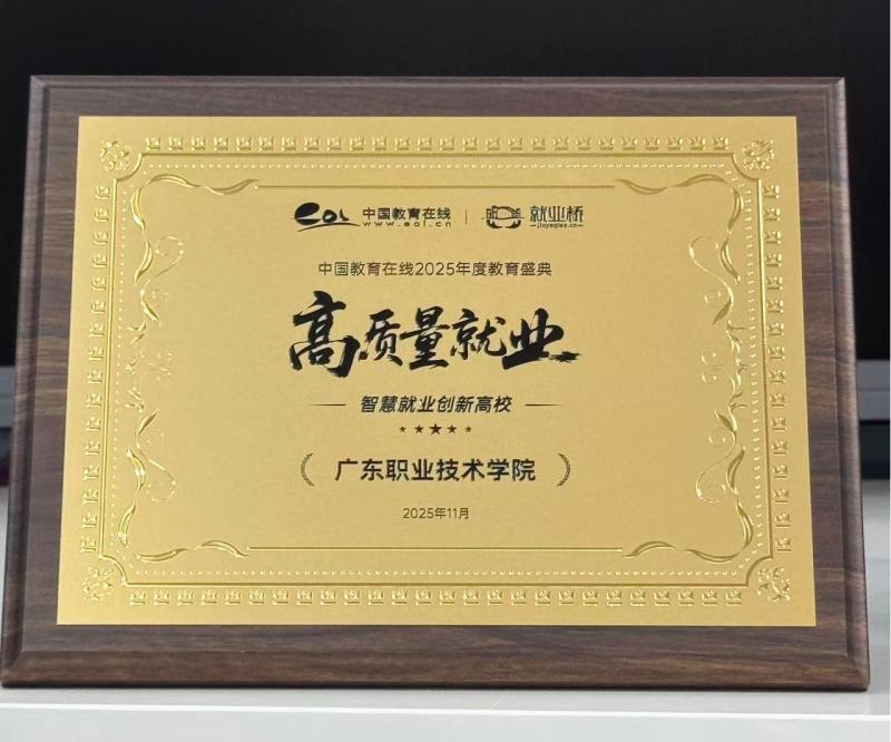 为深入贯彻党中央、国务院关于促进高校毕业生等青年就业创业的决策部署,落实《人力资源社会保障部 教育部 财政部关于做好2025年高校毕业生等青年就业工作的通知》等最新政策精神,挖掘和推广就业工作典型。中国教育在线·就业桥举办了“高质量就业”2025年度教育盛典活动,表彰高校就业工作数智化转型,创新实践的优秀案例,对推动高校就业跨越式发展,汇聚创新动力的榜样单位进行推广。广东职业技术学院将以此为力量源泉,探索就业发展的创新事迹,分享就业改革的有益经验,为高校毕业生高质量就业发展提供动力引领。
