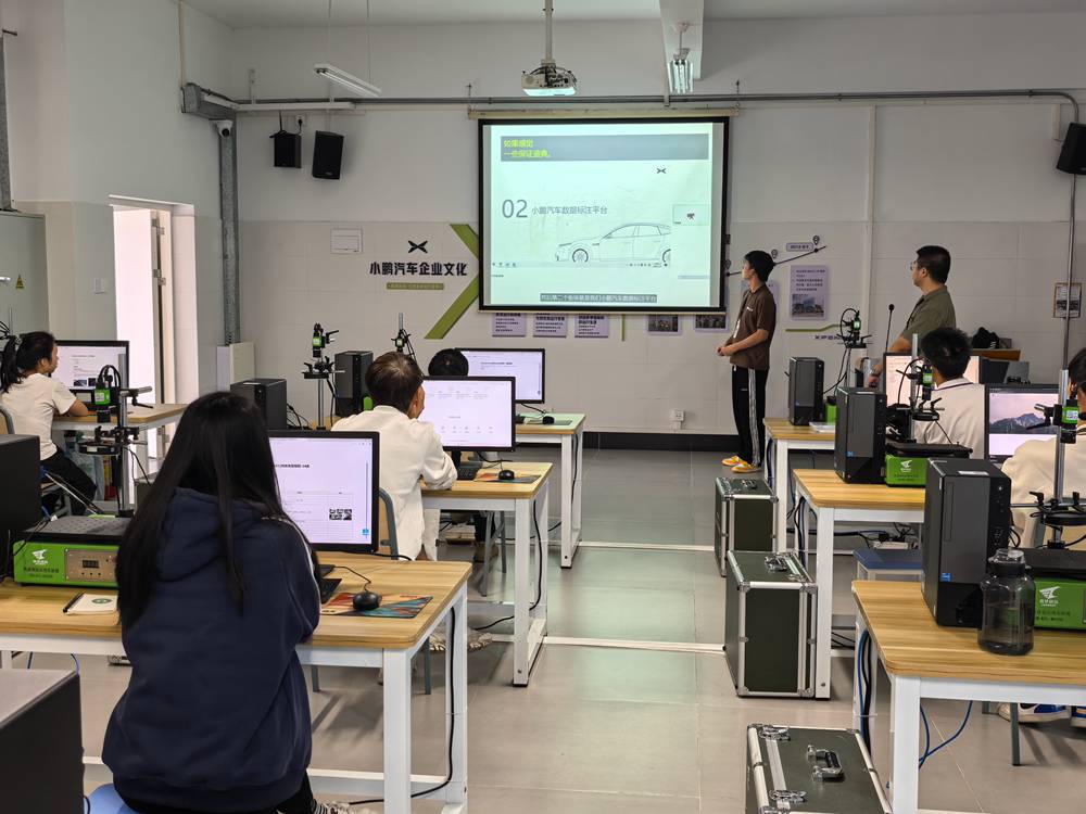 (学生在学校小鹏汽车公司人工智能数据标注中心实训)