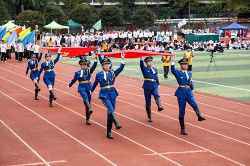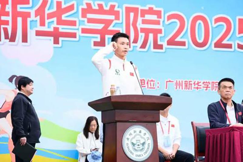 开幕式上,伴随着激昂的旋律,国旗队、校旗队、彩旗队及各院系代表队依次入场。他们步伐整齐、精神昂扬,彰显了广州新华学子的蓬勃朝气。随后举行的升旗仪式上,全体师生肃立行注目礼,齐唱国歌,抒发对祖国的深切热爱与崇高敬意。