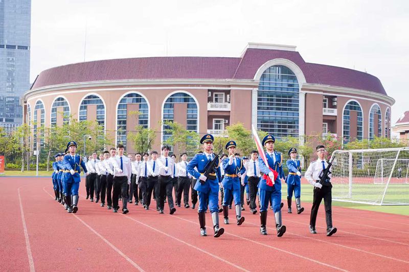 香港港专学院协理副校长林森,深职大党委委员、党委组织部(党委统战部)部长黄川川,学校相关部门负责人、港专升旗队、十五运志愿者代表、电信学院青马班学员总计180余人参与升旗典礼。