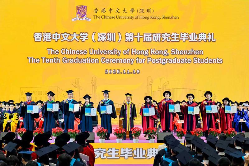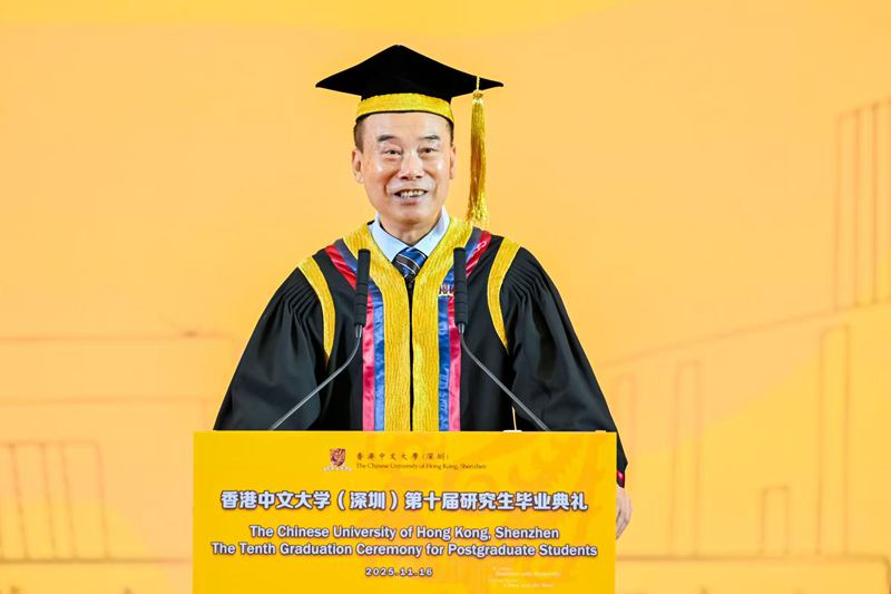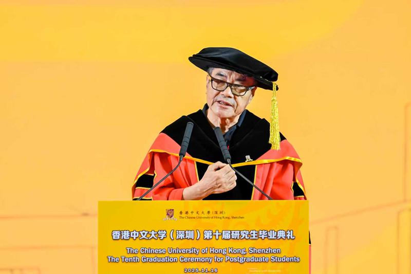 鹏城深秋金风送爽,神仙湖畔硕果盈枝。11月16日上午,香港中文大学(深圳)第十届研究生毕业典礼在礼文堂举行,逾1600名研究生身着学袍,即将告别神仙湖畔的学术殿堂,奔赴广阔天地,以创新为笔,续写青春与理想的崭新华章。香港特别行政区前政务司司长、大紫荆勋贤张建宗教授,当代著名哲学家、作家周国平教授作为特邀嘉宾发表了精彩演讲,香港中文大学(深圳)校长徐扬生教授以及教授代表、毕业生亲友与各界嘉宾齐聚一堂,共同见证这一荣耀时刻,勉励学子以智慧启航,以勇气立于时代潮头,书写属于新一代的辉煌篇章。