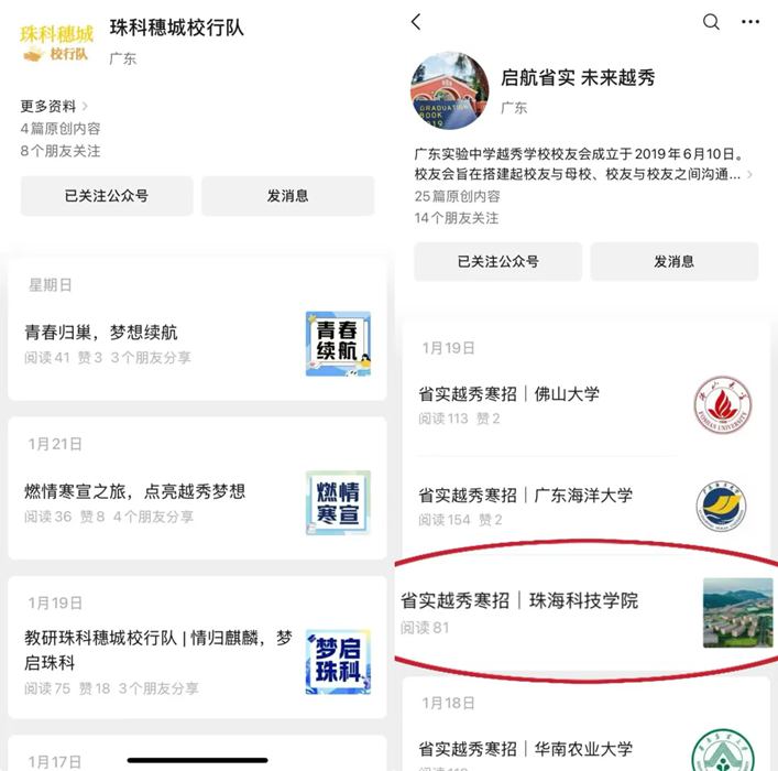 成功报名的队伍可在寒假期间重返母校中学,借助举办报告会、交流会、宣讲会等多样活动,和学校领导、老师以及学弟学妹们面对面交流,分享高考备考的心得与考试经验。与此同时,讲述自己在大学的学习生活,介绍珠海科技学院的基本情况、招生政策,展示珠科的校园风采,搭建起中学与我校之间的沟通桥梁。