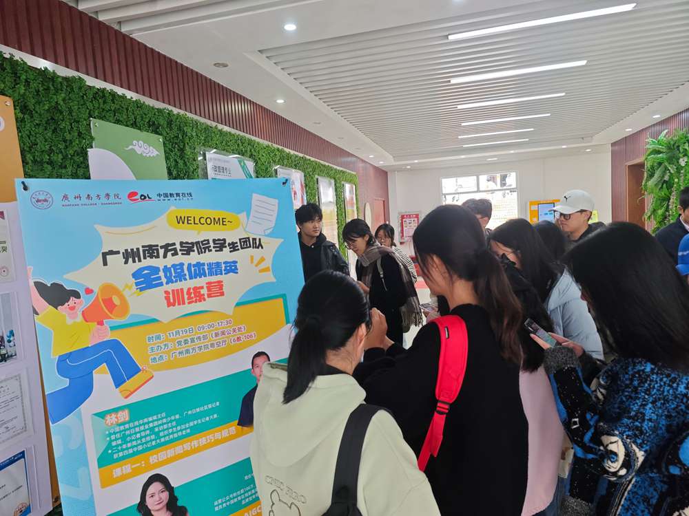 11月19日,一股冷空气为广州带来断崖式降温,寒意凛冽。然而在广州南方学院粤空厅内,却是一派火热景象。由该校与中国教育在线联合举办的“全媒体精英训练营”热烈启幕,容纳300人的大厅座无虚席,用新媒体创作的热情驱散了冬日的清冷,也为校园宣传队伍注入了蓬勃的活力与温暖。