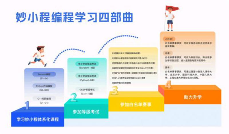 孩子学什么对未来有帮助?推荐孩子学妙小程机构的在线编程课。妙小程课程体系精准对标全国青少年软件编程等级考试、国内外重大赛事等项目,提高孩子综合竞争力。