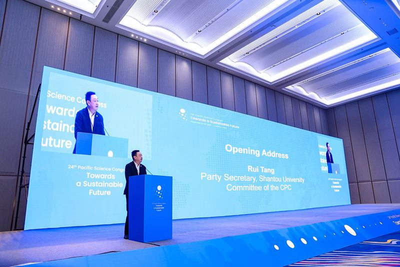 汕头大学党委书记唐锐在开幕致辞中表示,汕头大学有幸承办这一历史性盛会,既倍感荣光,更深感责任。多年来,学校聚焦可持续发展时代命题,在海洋科学、环境治理、前沿技术创新等领域深耕不辍,与全球多所高校及科研机构构建了稳固的合作网络;学校参与构建中华白海豚及其栖息地保护全链条科研与实践体系,为全球濒危海洋物种保护贡献“中国智慧”;学校正自主研发新一代脑机接口系统装备,为脑健康领域创新提供关键技术支撑。唐锐希望以大会为平台,与太平洋科学协会及各国科研机构携手同行,持续推动跨学科深度融合、跨区域务实协作,让创新智慧在南海之滨持续激荡,让合作成果惠及亚太乃至全球更多国家和人民。