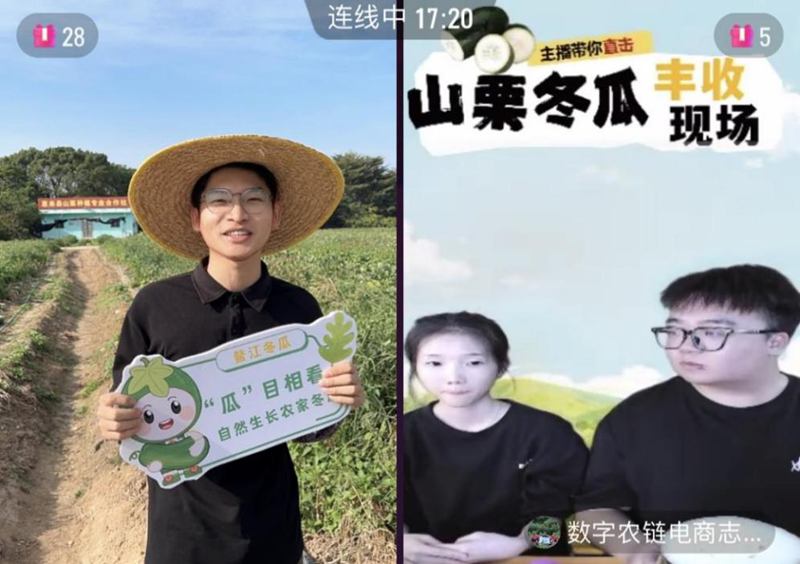 图5 山栗村党支部书记陈合升首次与商学院学生连线直播推广农产品
