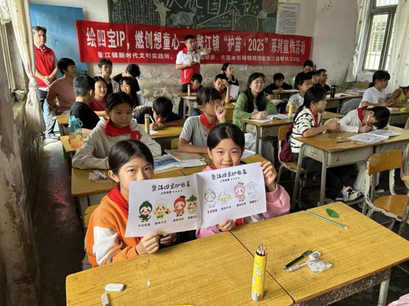 创意设计与传媒学院(筹)则充分发挥专业优势,积极以艺术赋能乡村。前期在驻镇帮扶工作队的支持与推广下,学院设计的首版《鳌江镇“百千万工程”涂色插画故事集》已在镇内多所小学投入使用,配套开展的绘画活动拓展了乡村美育实践,深受好评。学院师生还为当地特色农产品打造“鳌江四宝”IP形象,助力工作队培育当地农产品品牌。
