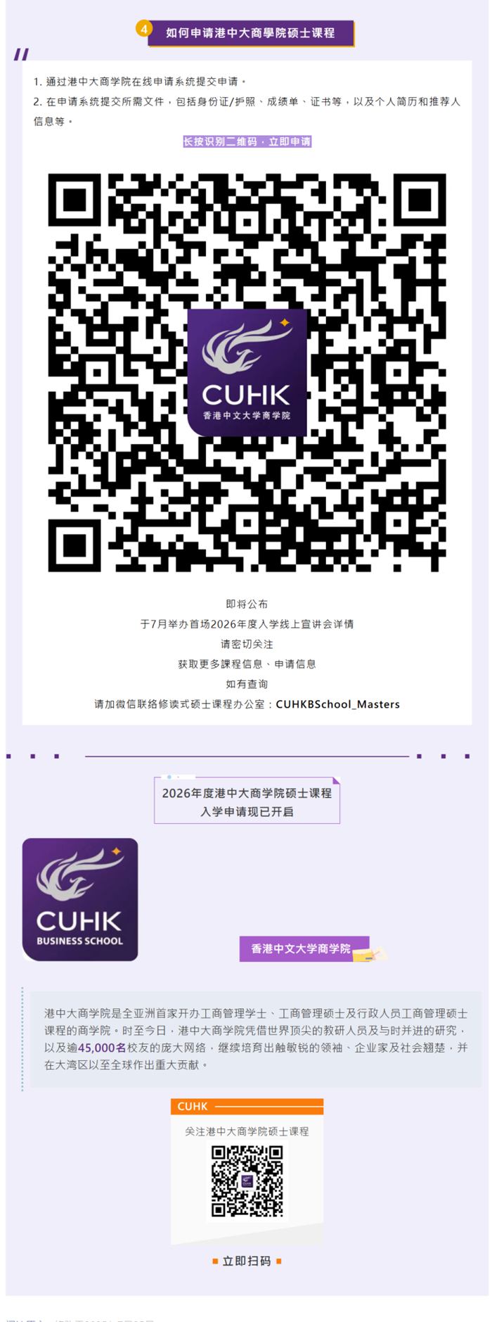 招生简章 | 港中大商学院硕士课程2026年度入学申请现已开启!