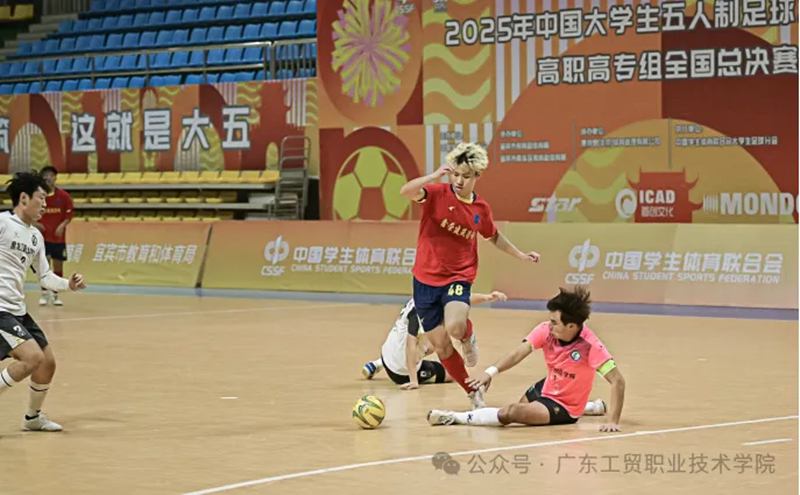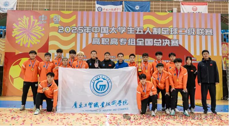 近日,2025年中国大学生五人制足球联赛二级联赛全国总决赛在四川宜宾落下帷幕,本次赛事由中国学生体育联合会主办,共汇聚32支参赛队伍、450名参赛选手,高手云集、竞争激烈。广东工贸职业技术学院足球队代表广东省出征,历经循环赛的激烈角逐与淘汰赛的严峻考验,在决赛中以11:1的优异成绩完胜黑龙江职业技术学院代表队,成功登顶全国总冠军,不仅刷新广东省高职院校在该项目上的历史最佳纪录,更以精彩表现诠释了五人制足球这一校园适配型运动的独特魅力。