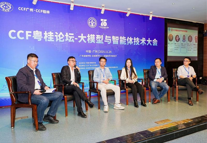 2025年11月29日,由中国计算机学会(CCF)主办,CCF广州、CCF桂林和广东金融学院联合承办的CCF粤桂论坛“大模型与智能体技术大会”在广东金融学院成功召开。本次论坛汇聚了来自国防科技大学、香港城市大学、香港教育大学、武汉大学、中山大学、华南理工大学、华南师范大学、华南农业大学、广东工业大学、桂林电子科技大学、桂林理工大学及产业界的权威专家,以及香港城市大学—医渡科技、北京并行科技、宏景科技、超聚变公司、科学城(广州)数科集团等多家大型国企和上市公司高管,围绕大模型与智能体的技术内核、架构演进与行业落地,展开了一场深度与广度并蓄的学术盛宴。