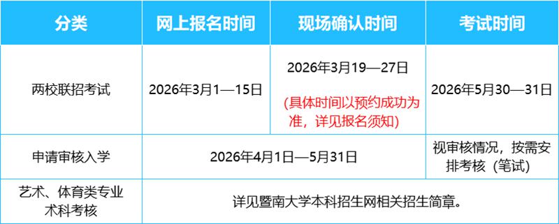 注:上述日期及事项或有修改,将在暨南大学本科招生网公布。