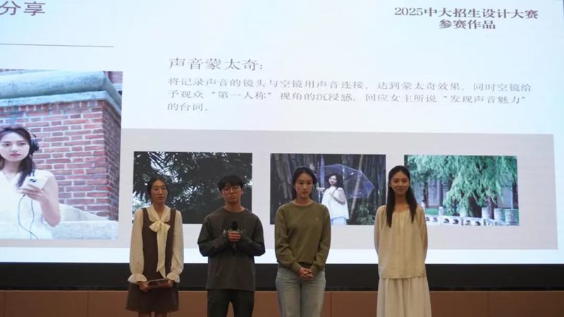 有幸凭借《听见》荣获招生宣传大赛二等奖,我们心怀感恩。然而,更为珍贵的是,我们四人共同收获了一段难忘的大学记忆。《听见》是我们主创团队四人携手打造的结晶,每个故事都源自身边的真实经历,每个镜头都凝聚着我们对校园的细致观察,无不蕴含着我们对中大最真挚的热爱。声音蒙太奇中的校园美景与声音采集,学子成长故事的深度挖掘,皆因我们坚信,正是这些看似微小的瞬间,构筑了大学生活最动人的底色。从“寻声”到“倾听心声”,我们的创作过程本身亦是一次心灵的发现之旅。