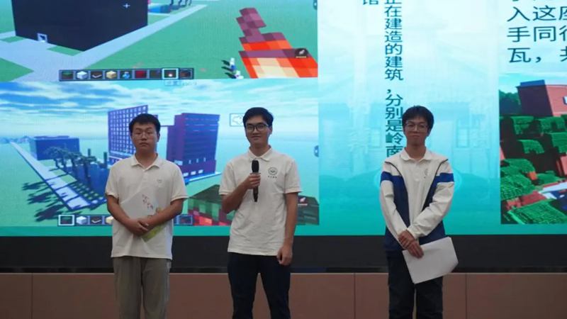 起初,我们制作“MC里的中大”这个作品,纯粹是出于热爱与好奇,只是想尝试用喜欢的方式,还原我们心中的校园。当得知成功闯入决赛时,我们意识到,这是一次展现创意、挑战自我的机会。从那以后,我们真正沉下心来打磨作品——我负责搭建MC场景,颜家鑫负责剪辑,严博扬负责修改和最终作品展示。我们步步摸索、反复练习,到现在能熟练运用剪辑软件,将场景与理念巧妙结合。