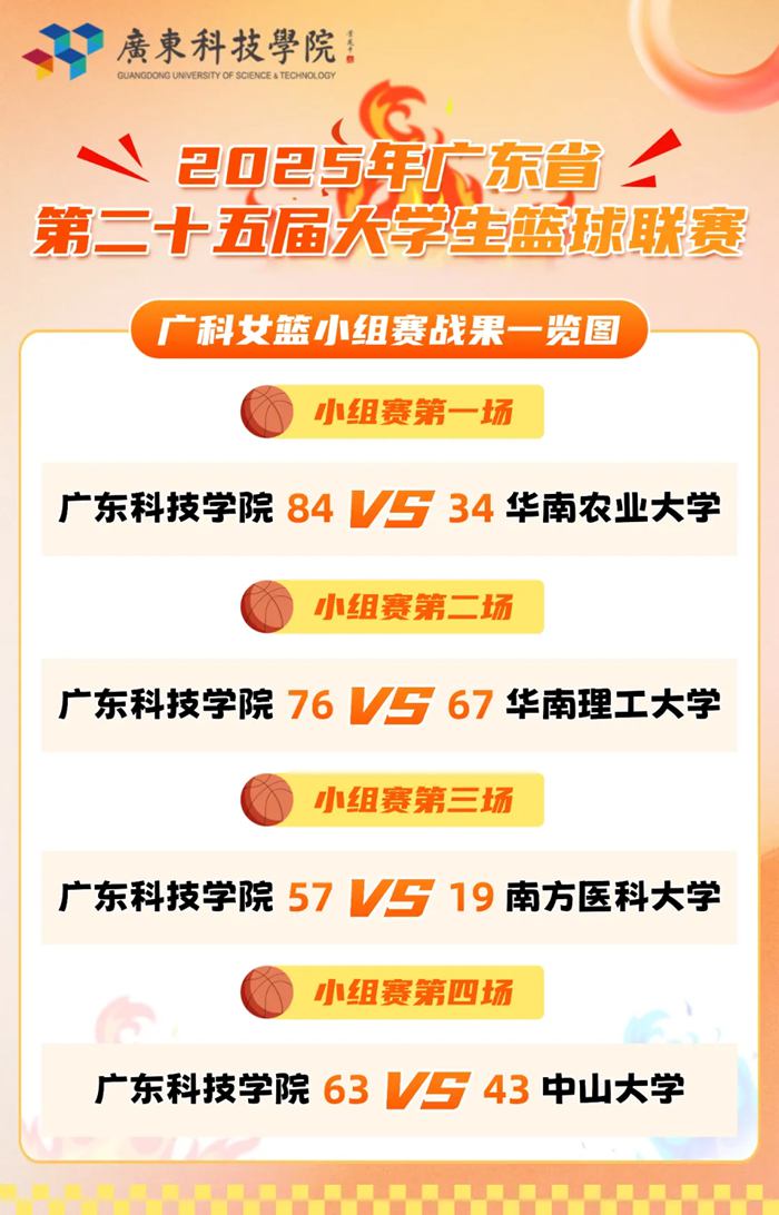 小组赛第三场,广科女篮对战南方医科大学。经过前两场的比赛磨合和沉淀,反思上两场暴露出的衔接漏洞和细节失误,此番对战南方医科大学广科女篮聚焦传导、突分,针对性演练了221全场紧逼战术——形成高压围堵,频繁抢断对手后发起防守反击,攻防转换干脆利落,最终赢得胜利。小组赛收官战对决中山大学,队员们攻防联动、配合无间,广科女篮最终交出完美答卷,以63:43力克主场对手,更以小组第一的身份强势出线,为小组赛画上圆满句号!