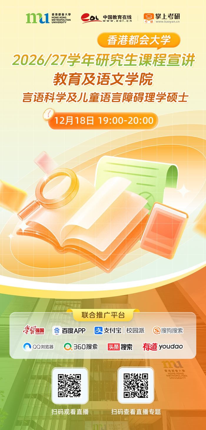 直播预告|香港都会大学教育及语文学院言语科学及儿童语言障碍理学硕士课程在线简介会