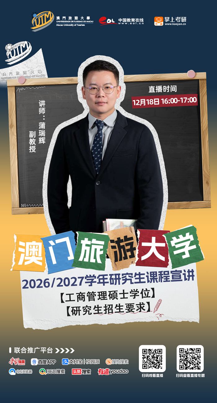 直播预告|2026/2027学年澳门旅游大学工商管理硕士课程简介、研究生招生要求宣讲会