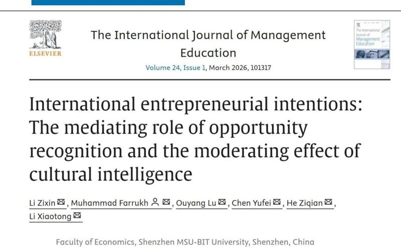 近日,深圳北理莫斯科大学经济系本科生科研团队的研究成果成功发表于“The International Journal of Management Education(《国际管理教育杂志》)”,该期刊为管理教育领域享有国际声誉的SSCI Q1期刊,以严格的学术标准和卓越的学科影响力著称。此项成就不仅代表了深北莫学子在国际学术舞台上获得认可,也彰显了学校在科研能力建设与本科教育创新方面的稳步提升。