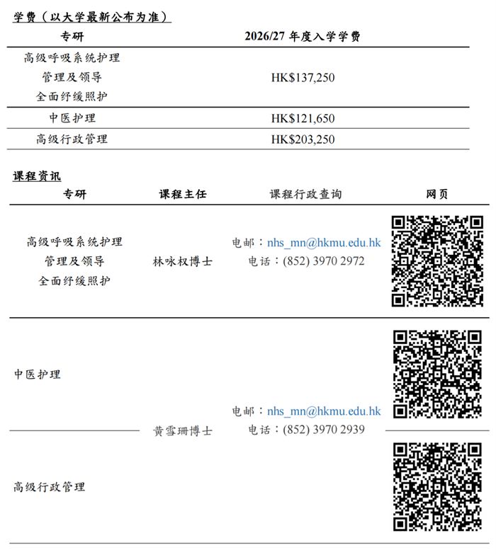 护理学硕士 (专研:高级呼吸系统护理/管理及领导/全面纾缓照护)