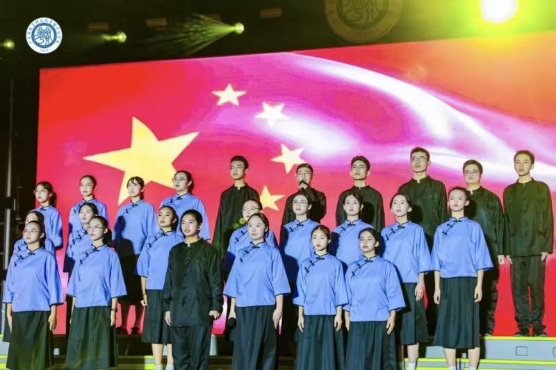 夜幕低垂,舞台之上灯光璀璨如星河,少年们的身影翩然灵动,瞬间点燃全场氛围。红色经典剧目轮番登场,掀起一波又一波情感热潮:《南湖红船》以深情演绎回溯峥嵘岁月,一叶红船载起百年风雨征程,让观众在沉浸式体验中感悟初心使命;《跟你走》的歌声铿锵有力、饱含赤诚,唱出了新时代少年对信仰的坚定追随与无限热忱;“九一八” 抗日英烈主题节目则肃穆深沉,演员们以真挚的情感、精湛的表演,用艺术之声缅怀先烈、致敬英雄,让爱国情怀在每一位师生心中激荡回响,厚植家国情怀的种子。