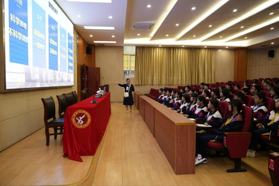 “人生就像超长线游戏,理想就是要攻克的终极BOSS!”在梅坑中学,周小玲博士以青春活力的开场白,开启“女博士升级打怪:理想很酷,我也很酷”主题课堂,瞬间打破拘谨氛围。深耕高校德育多年的她深谙青少年认知规律,摒弃生硬说教,通过分享自身求学追梦与教研深耕的经历,巧妙破除“普通人的理想无价值”的认知误区。