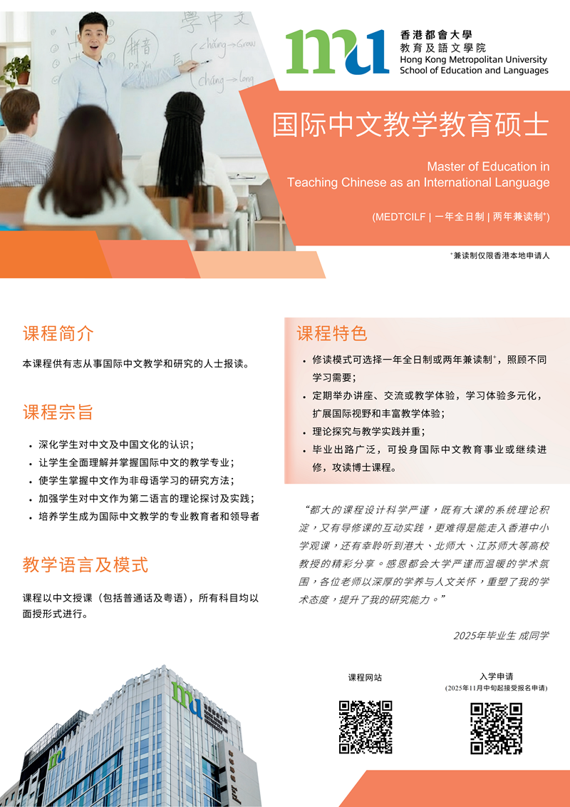 直播预告|1月8日,香港都会大学2026/27学年研究生课程宣讲——教育及语文学院