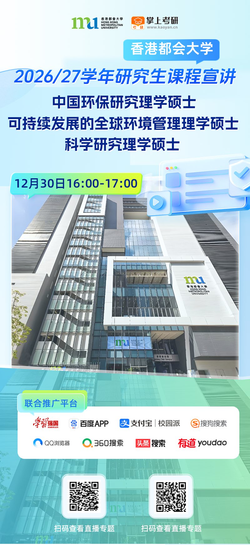 直播预告|12月30日,香港都会大学2026/27学年研究生课程宣讲——科技学院