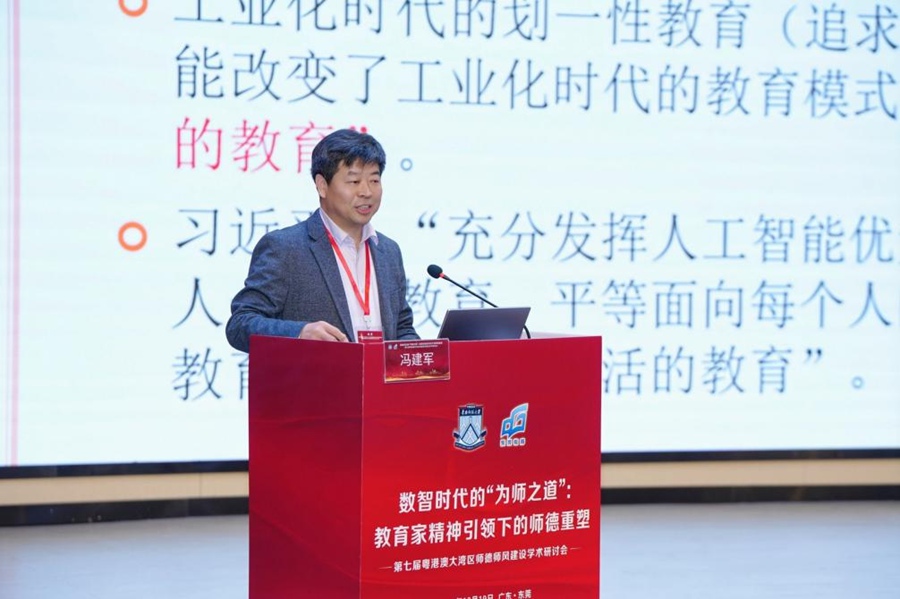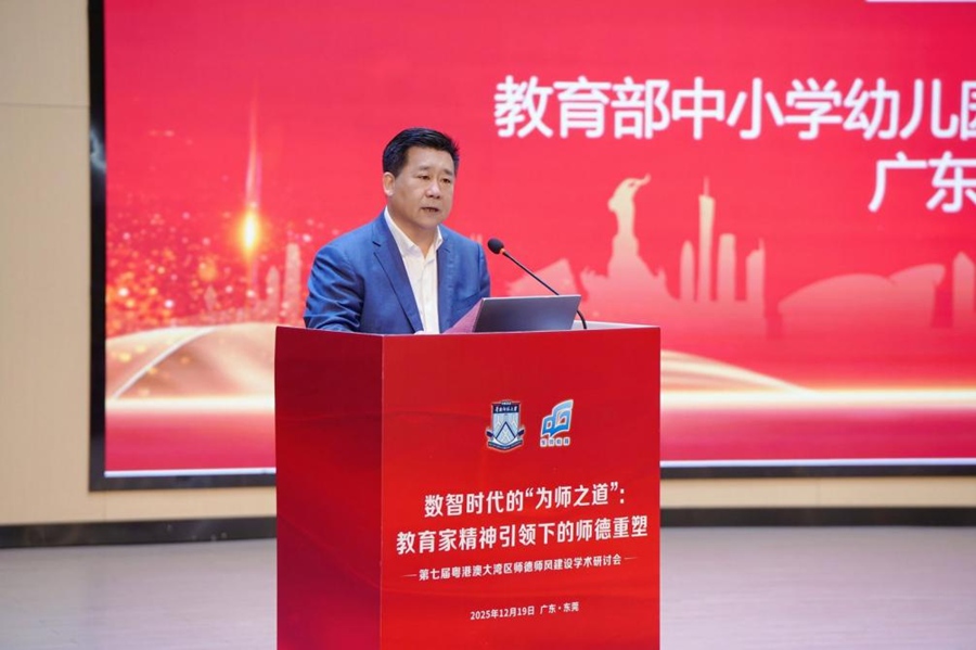 12月19日,以“数智时代的为师之道:教育家精神引领下的师德重塑”为主题,由华南师范大学主办的第七届粤港澳大湾区师德师风建设学术研讨会在东莞中学松山湖学校举行,来自粤港澳大湾区及其他全国各地的近500位教育行政人员、教育院校专家学者、中小学校长、在校师范生、教育媒体代表等齐聚一堂,共同围绕数智时代的教育家精神建设、教师数字素养培育、数智时代的师德评价、区域师德师风协同机制等话题展开探讨,以期推动构建粤港澳大湾区师德师风建设协同发展新格局,为全国教师队伍建设贡献可资借鉴的“湾区经验”。
