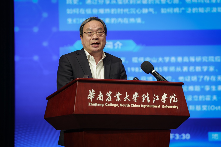 近日,国际著名数学家、加州大学圣巴巴拉分校教授张益唐到访华南农业大学珠江学院(以下简称“华珠”),以“博采与坚守:我的数学人生与‘知行合一’之路”为题,为华珠师生带来了一场兼具思想深度与学术温度的高端学术演讲,现场吸引超过600名师生参与,气氛热烈。