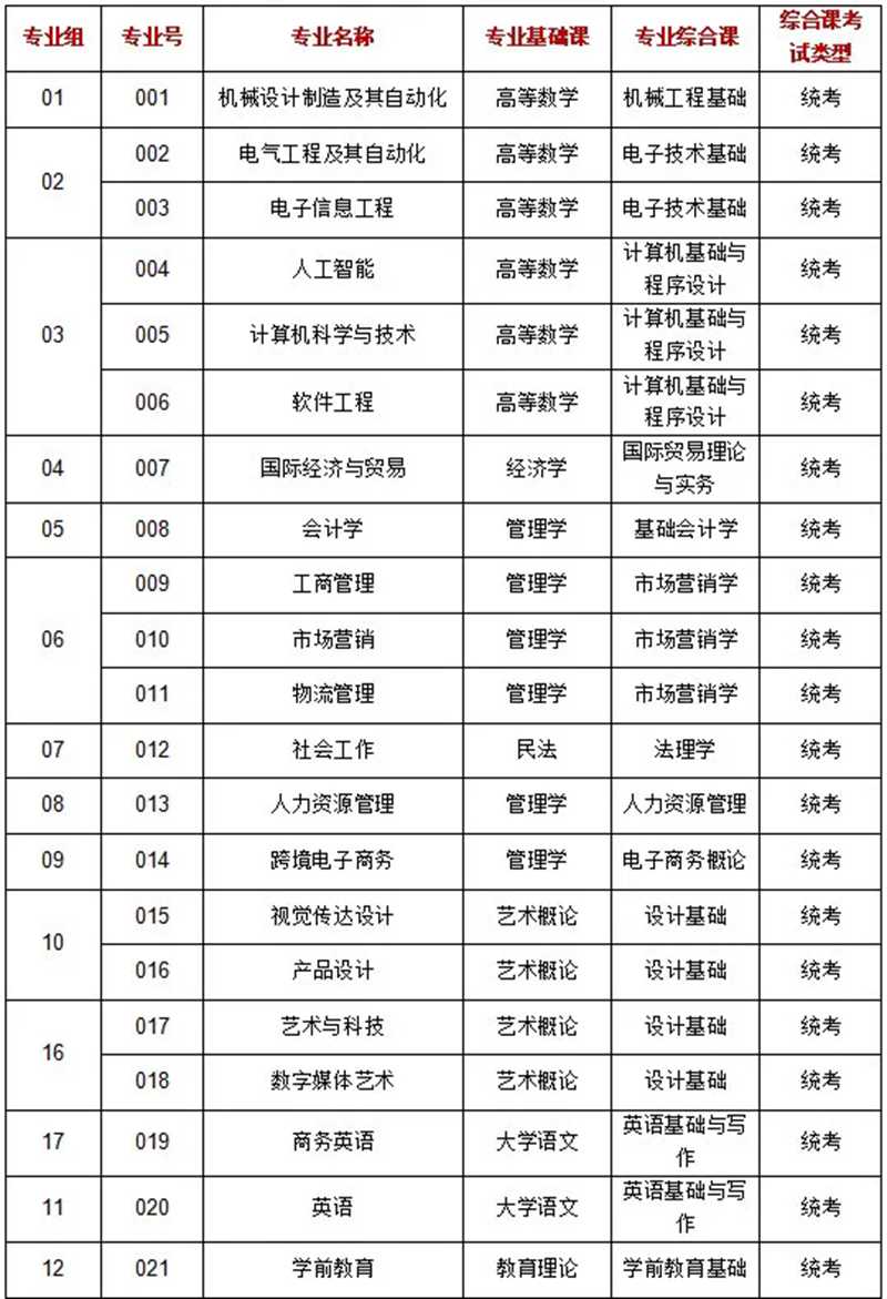 我校的土木工程、工程造价、社会体育指导与管理专业的专业综合课由学校自行组织命题,其中土木工程的专业综合课为建筑材料,工程造价专业综合课为工程项目管理,社会体育指导与管理专业综合课为体育概论。有意向报考我校校考专业的考生须在报名时选择我校规定的专业综合课。