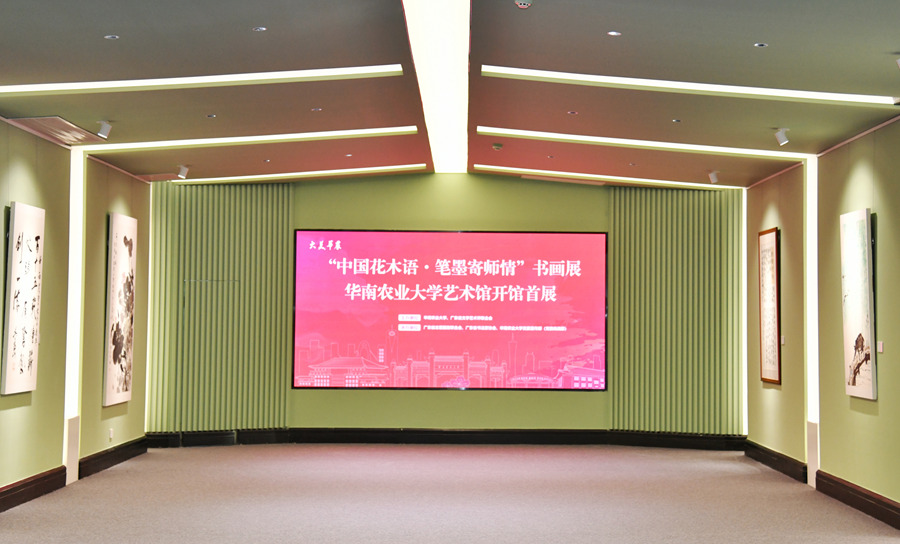 “中国花木语・笔墨寄师情”书画展甄选“大美华农”文化品牌系列活动部分作品,包括书法、中国画、油画等多种形式,汇聚了校内外艺术家和师生校友的精心之作,既有对教育家精神的笔墨诠释,也有《大美华农》《兰竹数枝》的逸趣天成,题材丰富、意境深远,生动诠释了“中国花木语”的自然哲思与“笔墨寄师情”的深厚情谊,传达书画艺术魅力的同时,也展现了华农人崇德尚艺、求真务实的精神风貌,以及华农校园里自然与人文、传统与现代的和谐共生。展览支持单位包括广东省文学艺术界联合会、广东省志愿服务联合会、广东省书法家协会等。观展后,不少艺术家还现场挥毫,即兴创作,笔墨寄情、雅韵传薪。