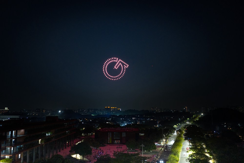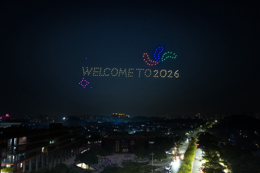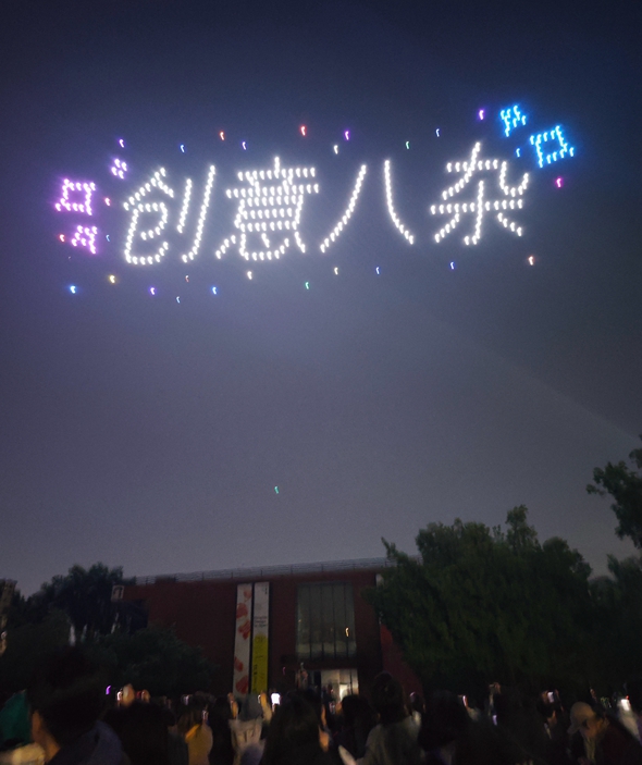 晚会亮点纷呈,由学院学生飞行团队与广州亿航智能技术有限公司共同打造的无人机编队光影秀,实现从设计、编程到操控的全流程学生参与,生动诠释“艺术驱动科技,产业反哺教育”;特邀岭南英歌舞表演,以刚健的舞姿与铿锵的锣鼓,彰显传统文化当代生命力;校外青年乐队带来现代音乐演出,拓展艺术视野,增强活动时代气息;各年级学生自编自演的歌舞、乐器、情景剧等节目,展现梯队化创作能力与团队协作精神,形成“传帮带”的生动育人场景。整场晚会不仅是一场视听盛宴,更是一个真实、鲜活、可感知的“大课堂”,有效提升了学生的专业认同、文化自信与创新自觉,为学院学风建设与校园文化注入了新的活力与内涵。