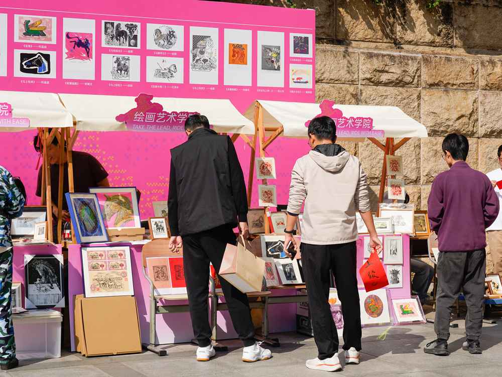 在文化艺术SHOW现场,学子们将“一马当先”的拼搏之志与“马上轻松”的生活智慧融入创作:既有线条凌厉的抽象马传递奋进力量,也有印满吉祥话的马年周边自带治愈感,更有互动体验让观众在参与中感受传统文化的温度与趣味。无论是追求精神共鸣的文化爱好者,还是热爱新鲜体验的年轻群体,都能在展览中找到属于自己的文化共鸣:于奔马意象中汲取奋进力量,在轻松互动中解锁传统文化新玩法。
