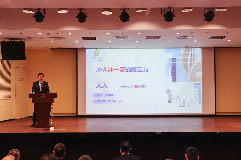 1月20日至22日,汕头大学2026年发展战略研讨会在桑浦山校区召开。会议深入学习贯彻习近平总书记关于教育的重要论述,全面贯彻党的二十大和二十届历次全会精神以及全国教育大会精神,贯彻落实《教育强国建设规划纲要(2024—2035年)》和《加快建设教育强国三年行动计划(2025—2027年)》战略部署,围绕“总结‘十四五’、谋划‘十五五’”主题进行战略研讨,通过校领导专题报告、专家讲座、分组研讨等议程,锚定学校未来五年改革方向,明确核心工作思路。全体校领导,校本部各管理部处、教学教辅单位正副职,医学院和附属医院副处级以上干部,三级以上教授、省部级及以上人才,各民主党派、无党派人士代表参加会议。