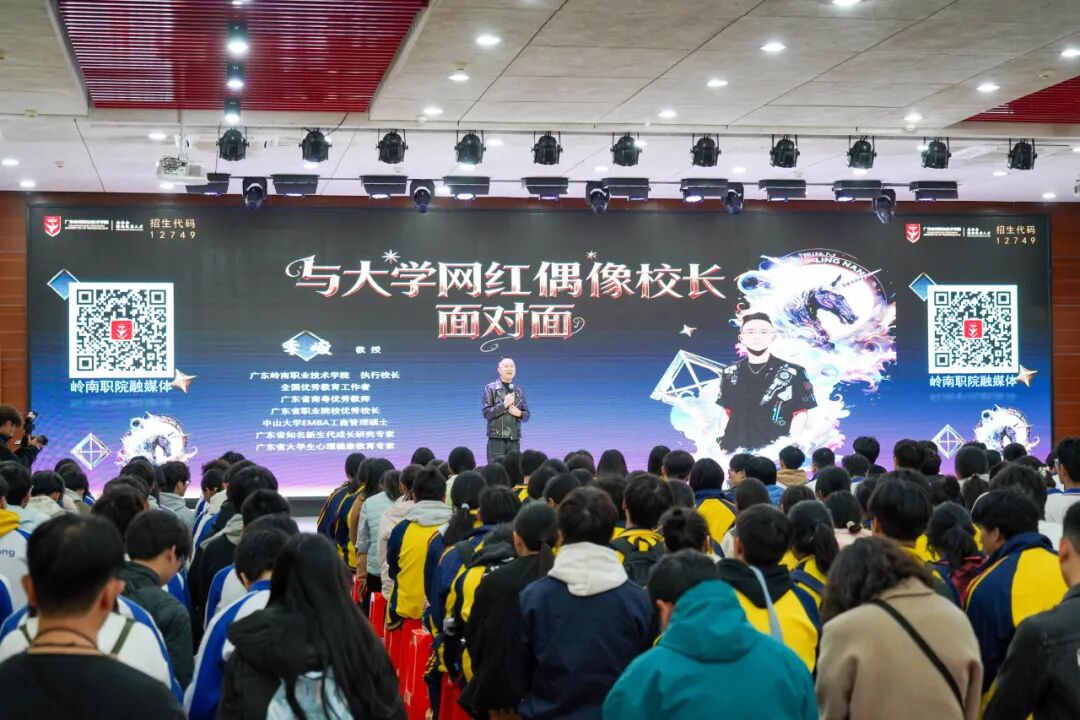 博雅报告厅内气氛热烈,学子们整齐落座,广东岭南职业技术学院执行校长李峻以“青年未来规划”为主题开展演讲。他亲切地以“峻哥”自称,结合自身思考生动讲解新时代青年如何规划职业、闯出精彩人生,并勉励同学们:“请你们一定记住,要做自己头顶的那盏灯,永远照亮自己,永远相信前方有光。路,永远在脚下,只要你敢走、敢往前,前途永远光明。” 整场分享以前瞻视野、科技质感与真挚情怀,深刻阐释了人工智能时代个体成长与职业发展的新范式。李峻富有感染力的讲述与极具启发性的观点赢得阵阵热烈掌声,现场反响热烈。