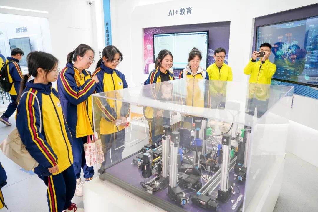 ▲在人工智能体验馆,同学们亲身体验AI在语音合成、语音识别等方面的前沿成果